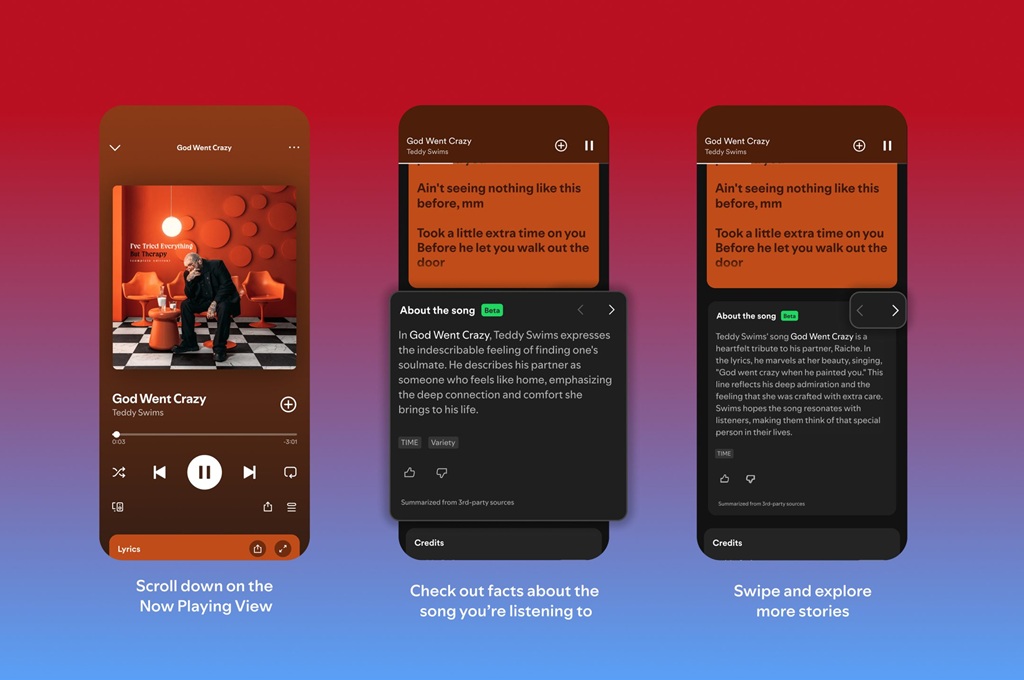 Bagian itu menampilkan penjelasan singkat yang ditulis oleh editor atau sumber resmi terkait interpretasi, cerita, atau pesan dalam lagu tersebut. Dengan memperkenalkan fitur ini, Spotify berupaya menjembatani kesenjangan antara musik dan pemahaman pendengar.