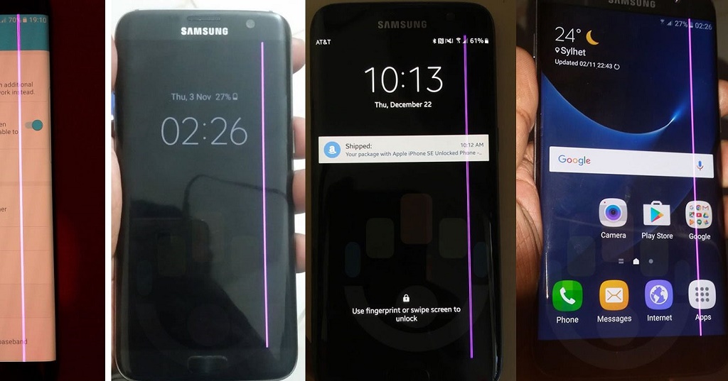 Selama beberapa bulan belakangan, muncul laporan dari para pengguna Galaxy S7 Edge yang menyebutkan bahwa muncul garis vertikal berwarna pink di layar ponselnya. Laporan ini muncul di Twitter, Facebook, YouTube dan forum Samsung. Biasanya, para pengguna juga memberikan bukti berupa foto.