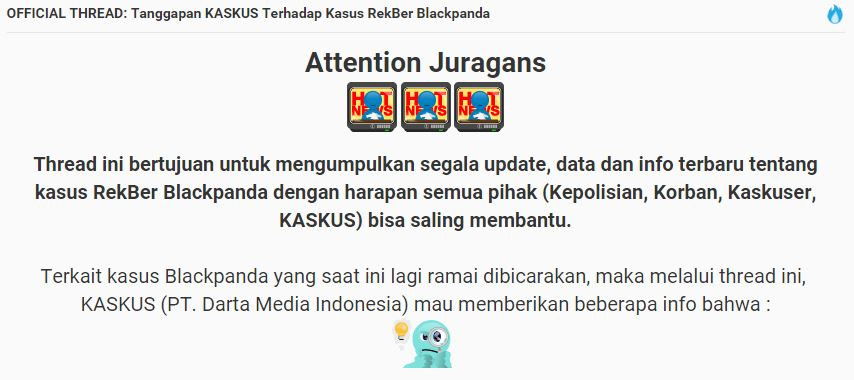 Mereka menekankan, Blackpanda hanyalah pengguna Kaskus. Dan satu-satunya orang yang bertanggung jawab atas konten yang mereka buat adalah diri mereka sendiri.