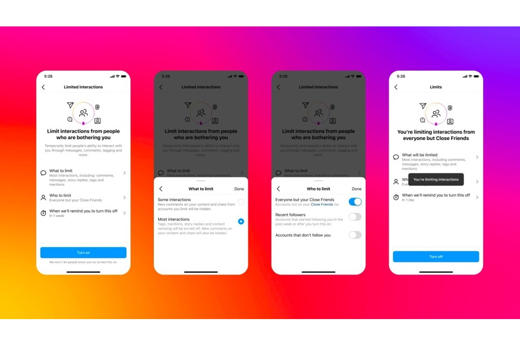 Pengguna dapat memilih untuk membatasi hanya interaksi dari pengikut terbaru dan atau akun yang tidak mengikuti akun pengguna. Selain itu, pengguna dapat membatasi akun tertentu tanpa perlu memblokir, sehingga mereka tidak akan mengetahui saat pengguna online atau telah membaca pesan mereka.
