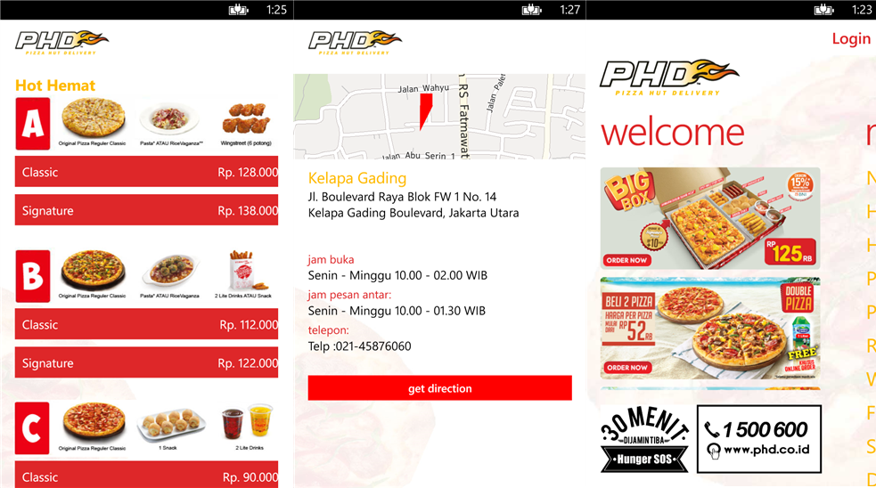 Melalui aplikasi ini, Anda dapat melihat semua pilihan menu yang ada di Pizza Hut, bahkan hingga promosi. Fitur lain adalah Check Your Area dan Track Your Order. Anda dapat mengunduh aplikasi ini di sini.