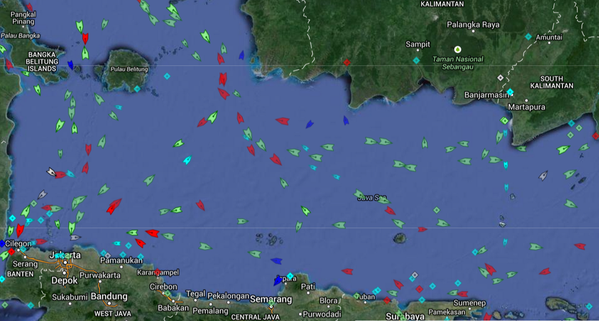 Kegiatan pencarian yang melibatkan berbagai unsur, dan sejumlah kapal dari negara sahabat ini membuat suasana lalu-lintas laut di sekitar lokasi pencarian menjadi sangat sibuk. Hal tersebut dilansir MarineTraffic melalui Twitter.