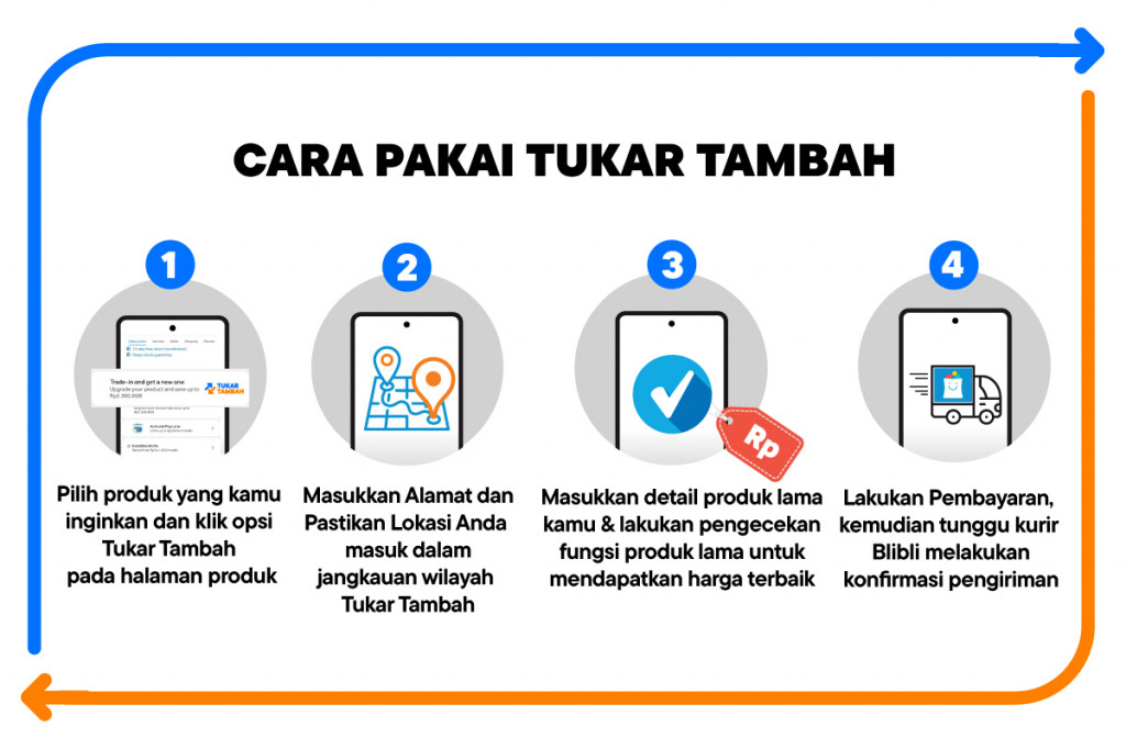 Jadi, masyarakat Indonesia yang tinggal di berbagai kota tersebut bisa menikmati fitur Tukar Tambah ini dengan mudah, prosesnya semua dalam genggaman. Proses Tukar Tambah diproses online, kurir akan datang ke rumah pelanggan untuk mengambil produk lama dan mengantar produk baru.