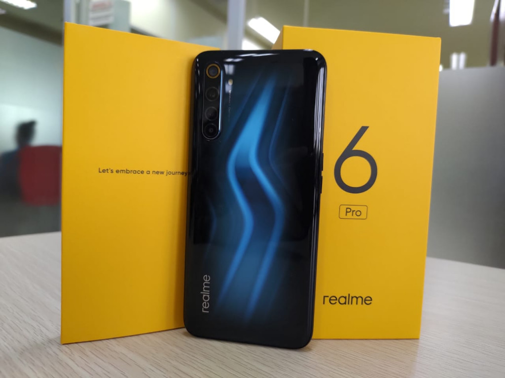 Selanjutnya terdapat smartphone realme 6 Pro yang ukurannya cukup lebar. Informasi yang beredar menyebutkan layarnya punya refresh rate 90Hz. Di sudut kiri atas layar terdapat kamera depan ganda model punch-hole sehingga tidak memiliki poni.
