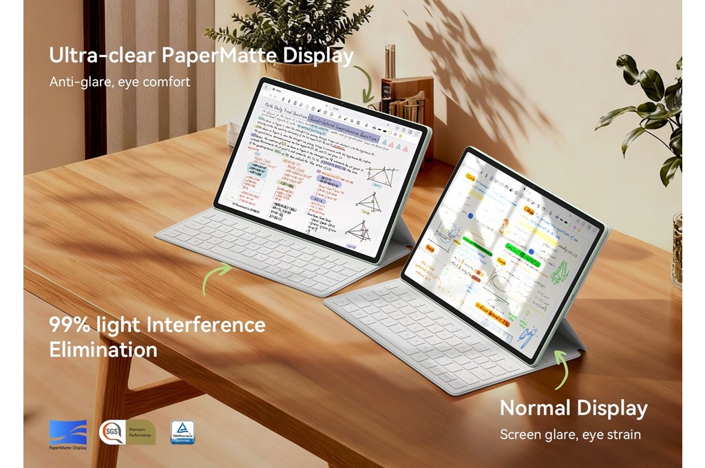 Pelajar dan pembaca akan merasakan manfaat layar Ultra-Clear PaperMatte 12 inci yang telah dilengkapi teknologi anti-glare dan perlindungan mata. Didukung fitur seperti split screen, AI handwriting enhancement, dan replay catatan di HUAWEI Notes, pengalaman belajar menjadi lebih terstruktur dan efisien tanpa melelahkan mata.