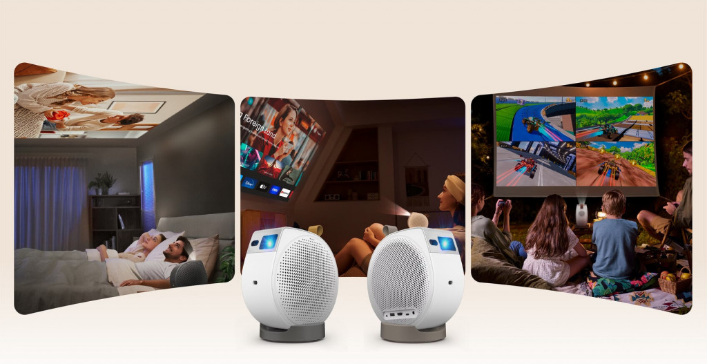 GV32 hadir dengan desain alas fleksibel yang memungkinkan proyeksi hingga sudut vertikal 135 derajat dan horizontal 360 derajat. Dengan kemampuan ini, pengguna dapat dengan mudah menonton film atau bermain game dari dinding maupun plafon tanpa repot melakukan banyak penyesuaian.
