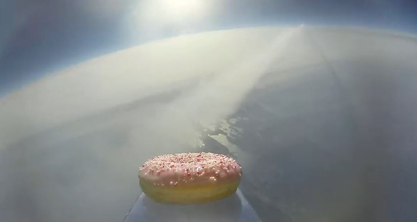 Mungkin terdengar berlebihan, tetapi sekelompok peneliti dari Norwegia berhasil menerbangkan donat ke laur bumi dan mengunggah videonya di YouTube. Tidak menggunakan pesawat ruang angkasa, mereka menempelkan donat ini dengan balon udara yang juga dilengkapi dengan kamera. Kamera ini berfungsi untuk melihat apa yang terjadi ketika donat berhasil mencapai melewati atmosfer.