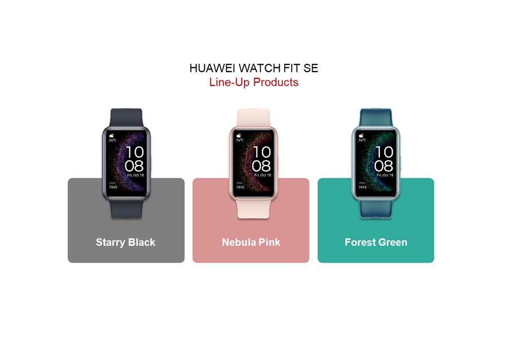 Huawei Watch Fit SE tersedia dalam tiga pilihan warna yaitu Starry Black, Nebula Pink, dan Forest Green. Pada periode penjualan perdana mulai tanggal 1 Desember hingga 15 Desember, konsumen dapat menggunakan voucher early bird sebesar Rp50.000 yang sudah diklaim sebelumnya.