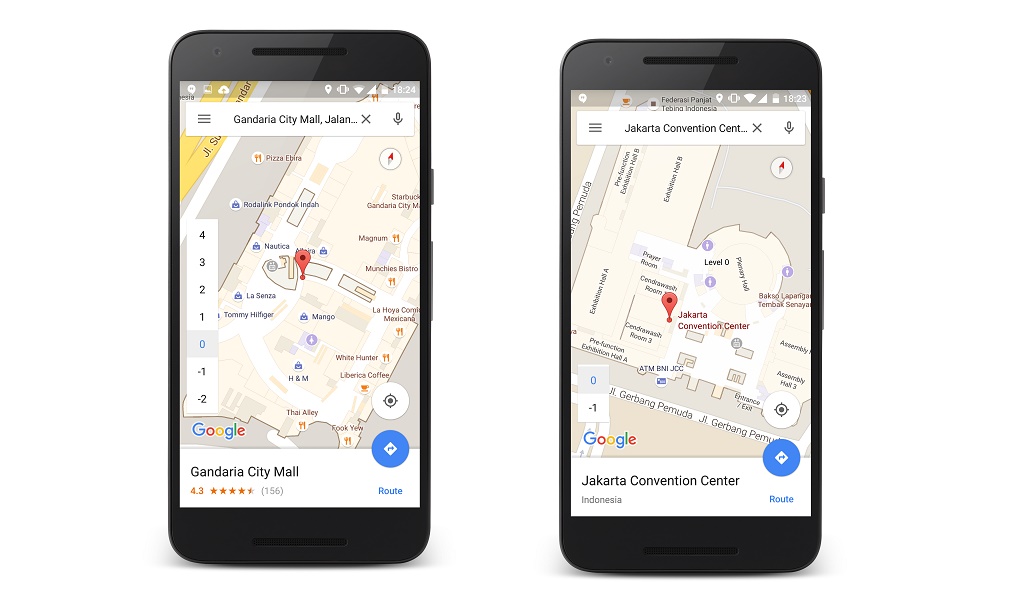 Bandara Udara Internasional Ngurah Rai Bali, Jakarta Convention Centre, Grand Indonesia Shopping Town, dan Museum Nasional Indonesia adalah beberapa tempat yang memiliki fitur ini. Dilengkapi navigasi detail per lantai, Indoor Maps akan memudahkan Anda menemukan gerbang, nama toko, ATM, dan toilet misalnya, di saat bantuan meja informasi tidak tersedia.