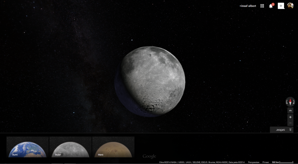 - Ketika opsi perkecil sudah mentok, Anda akan melihat gambar Bulan dan Mars seperti pada gambar di atas.
