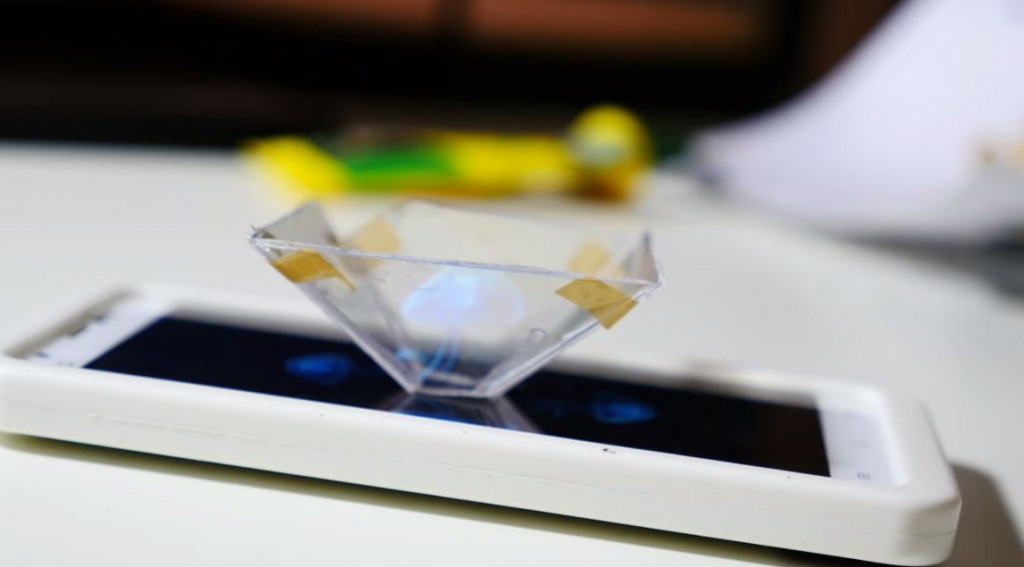 Setelah alat hologram selesai dibuat, tempatkan di atas layar ponsel dan Anda akan mendapatkan tampilan hologram dari ponsel Anda. Peralatan hologram tersebut memang masih memiliki sebuah keterbatasan, hanya dapat menampilkan hologram jika menggunakan video khusus yang memang dirancang untuk menampilkan hologram.