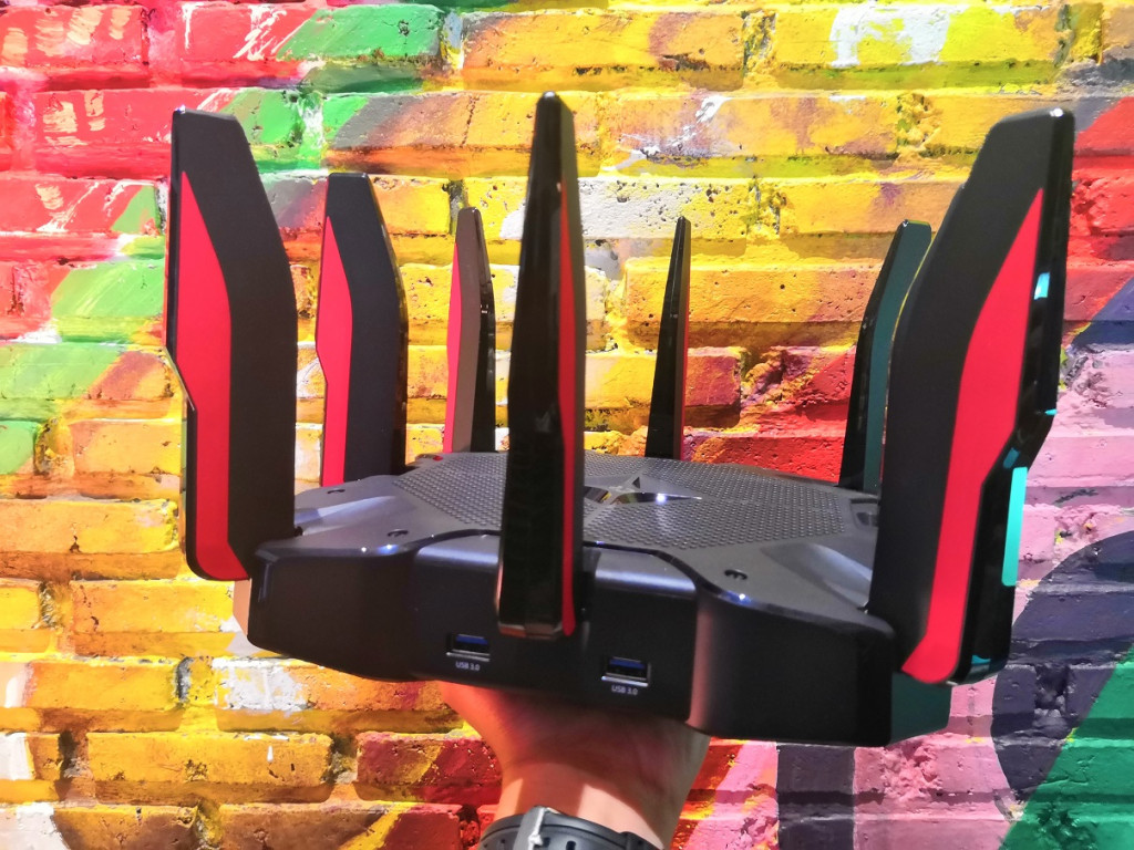 Router gaming pertama TP-Link langsung menyediakan koneksi AC5400, yang artinya mampu menyediakan throughput 5.400Mbps dengan tiga frekuensi yakni satu frekuensi 2,4GHz kecepatan 1.000Mbps dan dua frekuensi 5GHz berkecepatan masing-masing 2.167Mbps.