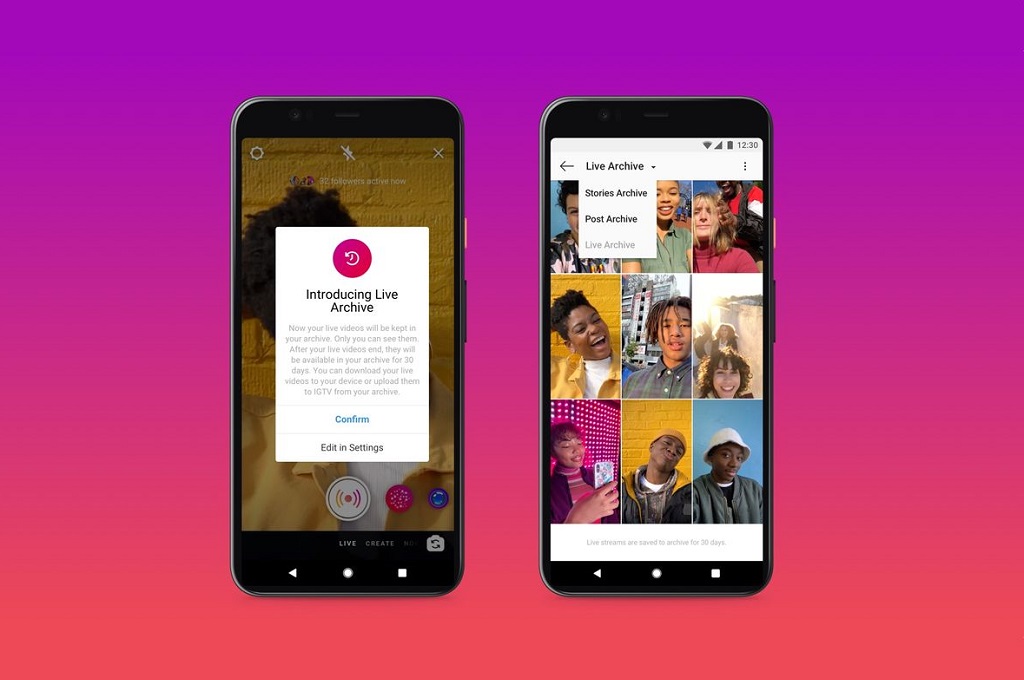 Instagram menyebut bahwa pihaknya akan segera menambahkan opsi yang memungkinkan kreator untuk mengarsipkan siaran langsung mereka hingga 30 hari. Sebelumnya, pengguna dapat mengarsipkan unggahan Feed atau Stories ke arsip privat, namun satu-satunya cara untuk menyimpan siaran langsung adalah dengan dirilis ke IGTV segera setelah siaran selesai.