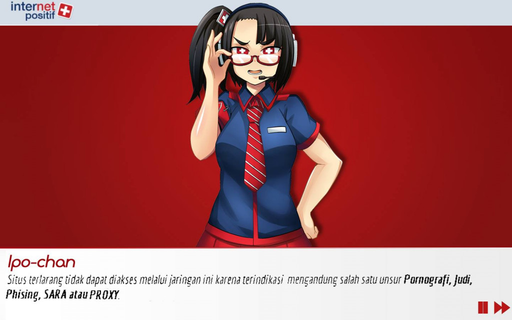 Berbeda dengan ISIS-chan, pihak yang direimajinasikan netizen Indonesia adalah Internet Positif yang telah disulap menjadi sebuah karakter bernama Ipo-chan.