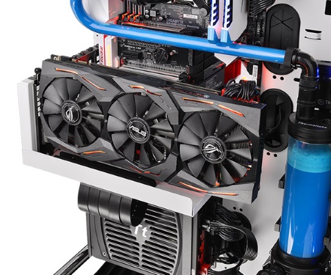 Solusi tersebut berupa kabel ekstensi untuk slot PCIe, salah satunya adalah PCIe Riser dari Thermaltake. Aksesori berupa kabel ekstensi ini memungkinkan Anda untuk memposisikan kartu grafis sesuka hati. Kabel ini juga dirancang khusus untuk menyalurkan informasi melalui slot PCIe 3.0 x16 dengan kecepatan hingga 8 GTps per lane.