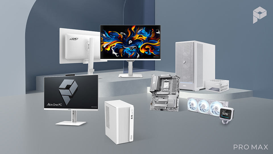 Melengkapi ekosistemnya, MSI memperkenalkan MSI Pro Max White Ecosystem yang mencakup komponen DIY berwarna putih konsisten. Di dalamnya terdapat motherboard MSI Pro Max X870E-A WIFI dengan Lightning Gen 5, Wi-Fi 7, dual LAN, USB 40Gbps, serta BIOS ROM 64MB untuk kompatibilitas jangka panjang.