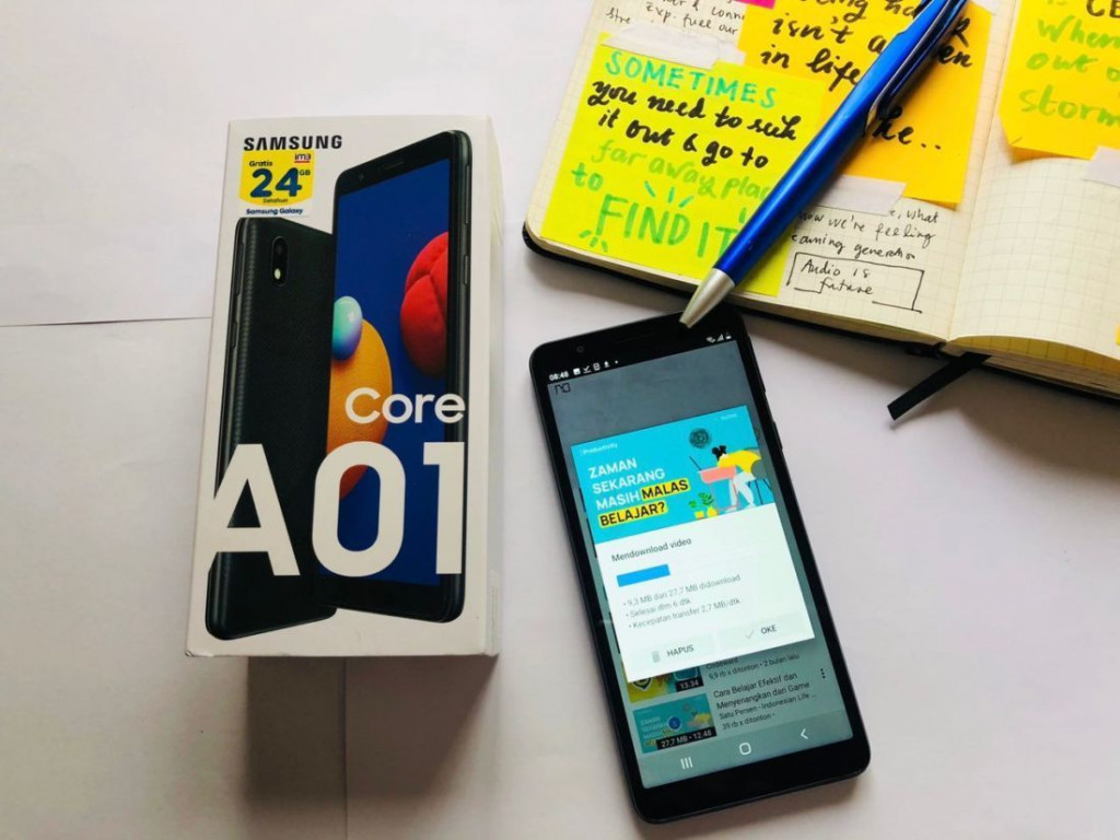 Samsung mengklaim punya Galaxy A01 Core yang dibanderol Rp999.000 menyediakan spesifikasi sangat cukup untuk kegiatan belajar atau sekolah dari rumah. Satu hal yang dibutuhkan untuk membuat video presentasi tugas sekolah adalah kamera depan HP.