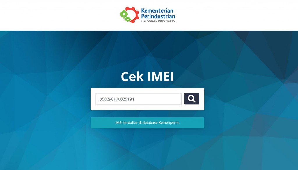 Di kolom pencarian Cek IMEI masukan nomor IMEI perangkat Anda. Apabila terdaftar maka akan muncul teks "IMEI terdaftar di database Kemenperin". Apabila tidak maka akan dinyatakan bahwa IMEI tidak terdaftar di Kemenperin, dan konsumen diperbolehkan melakukan komplain ke penjual.