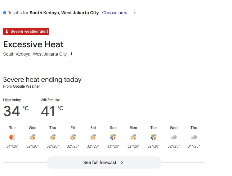 Menanggapi fenomena ini, Google kini menghadirkan fitur peringatan excessive heat atau panas berlebih di layanan cuaca mereka. Peringatan ini muncul ketika kombinasi suhu dan kelembapan dianggap berbahaya bagi tubuh manusia, suhu berada di atas normal dibandingkan tahun-tahun sebelumnya, serta kondisi panas ekstrem berlangsung minimal dua hari berturut-turut.