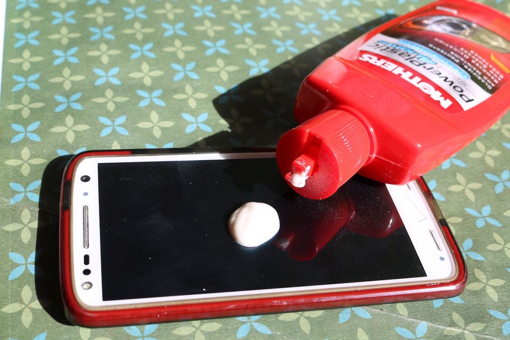 Wax mobil dan krim lampu depan mobil disebutkan sebagai cara efektif untuk menghilangkan goresan pada layar. Ini benar karena krim untuk lampu depan memang bisa memudarkan goresan pada layar. Selain itu, ia juga membuat layar menjadi lebih bersinar.