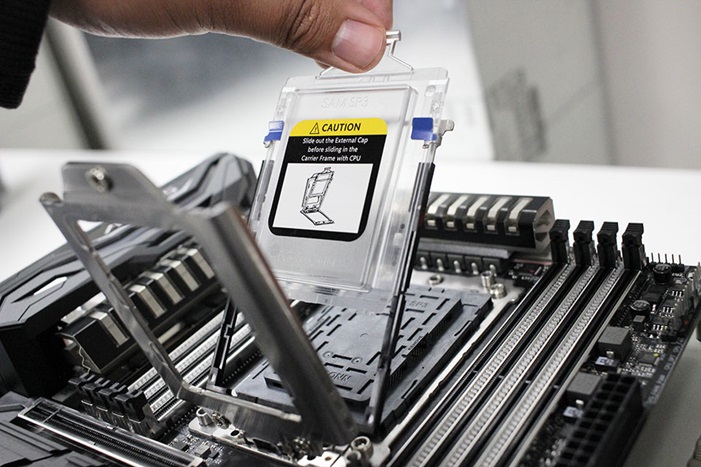 6. Turunkan posisi CPU hingga menempel ke socket, tekan perlahan hingga terkunci.