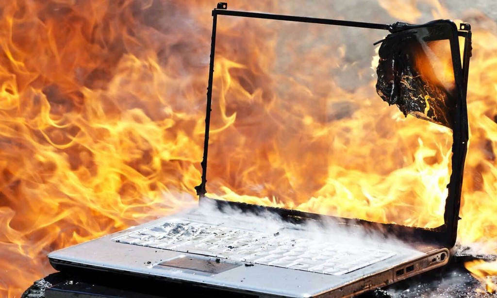 Kemudian laptop digunakan di atas material yang menghantarkan panas atau konduktor. Laptop juga digunakan di ruangan atau lingkungan yang punya suhu tinggi.