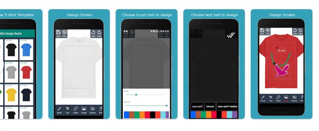 Aplikasi pertama datang dari T-Shirt Design Studio. Aplikasi ini bisa kamu unduh melalui Google Play Store secara gratis. Bisa dikatakan, aplikasi ini akan menjawab kebutuhan kamu dalam merancang baju.Baca Juga: Rekomendasi Aplikasi Desain Rumah Terbaik di Android