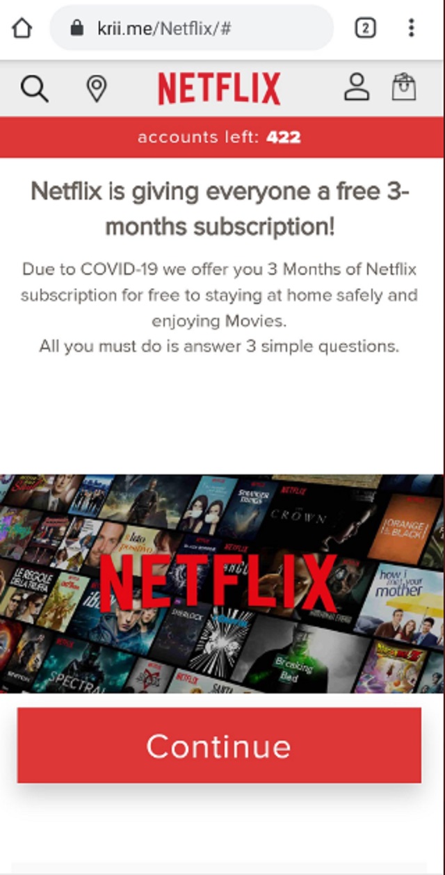 "Netflix is giving everyone a free 3 months subscription! Due to COVID-19 we offer you 3 Months of Netflix subscription for free to staying at home safely and enjoying Movies.