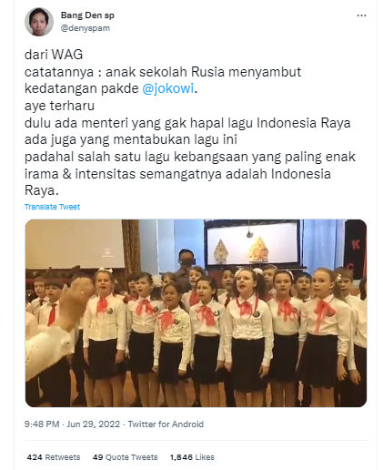 [Cek Fakta] Video Anak Sekolah di Rusia Nyanyikan Lagu Indonesia Raya Sambut Kedatangan Presiden Jokowi? Ini Faktanya