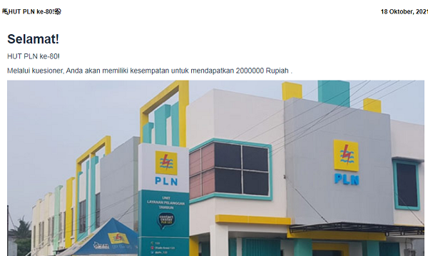 Klaim bahwa link survei berhadiah itu terkait PLN, tidak berdasar. Faktanya, tidak ada informasi resmi dan valid mengenai hal itu.