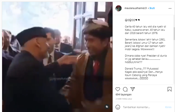 Sementara Jokowi lahir tahun 1961. Berarti Jokowi umur 17 tahun sdh jalan2 ke Afghan dan bahkan nyetir mobil segala. Wowwww!!!," bunyi narasi yang beredar.