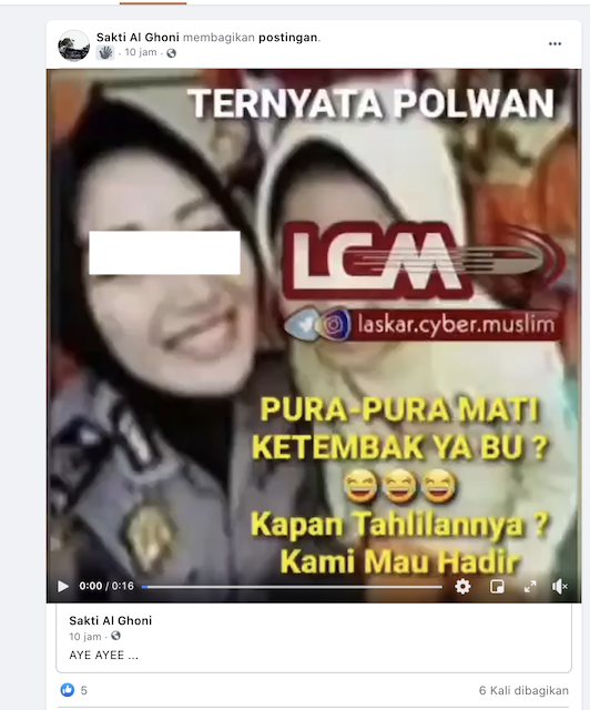 Adalah akun facebook Sakti Al Ghoni yang turut mengunggah video berdurasi 16 detik tersebut. Pada video itu diperlihatkan gambar wanita yang sempat menyerang petugas dengan senjata.
