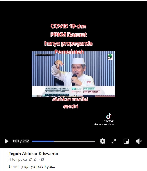 Akun facebook Teguh Abidzar Kriswanto membagikan video ini pada 4 Juli 2021. Dalam salah penggalan ceramahnya berisi sebagai berikut.