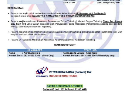 Beredar sebuah surat dengan narasi bahwa PT Waskita Karya (Persero) Tbk mengundang sejumlah orang untuk mengikuti tes calon karyawan. Surat ini beredar di media sosial.