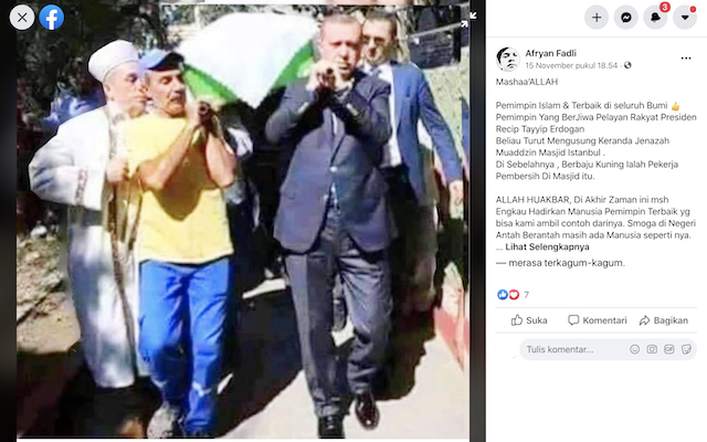Benarkah klaim pada foto yang beredar bahwa Presiden Erdogan menandu keranda jenazah muazin Masjid Istanbul? Simak cek faktanya.