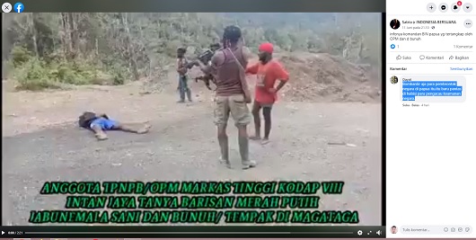 Dalam video tersebut, sekelompok pria bersenjata menembaki seorang pria yang sudah terkapar tak berdaya di atas. Pria-pria tersebut sambil meneriaki Papua Merdeka.