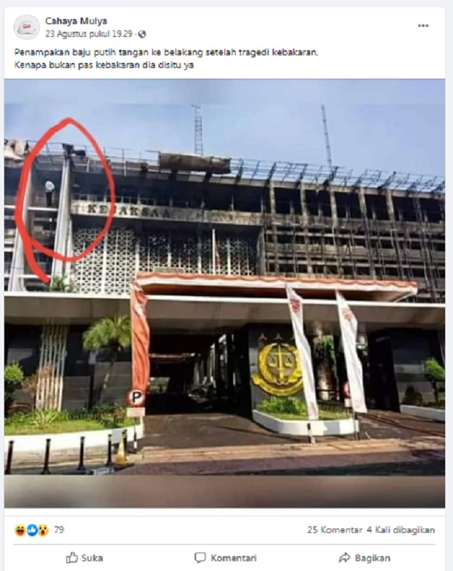 [Cek Fakta] Foto Penampakan Sosok Berbaju Putih di Gedung Kejaksaan Agung yang Terbakar? Ini Faktanya