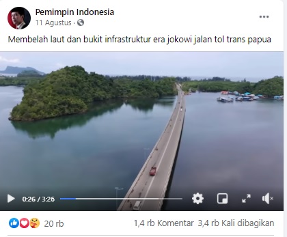 Akun facebook atas nama Pemimpin Indonesia membagikan video ini pada 11 Agustus 2020. Dalam unggahannya terdapat narasi sebagai berikut.