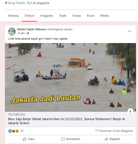 Adalah akun facebook Mantri Sapto Wibowo yang turut mengunggah video dengan thumbnail dan narasi tersebut, Selasa 21 Desember 2021. Berikut penampakannya: