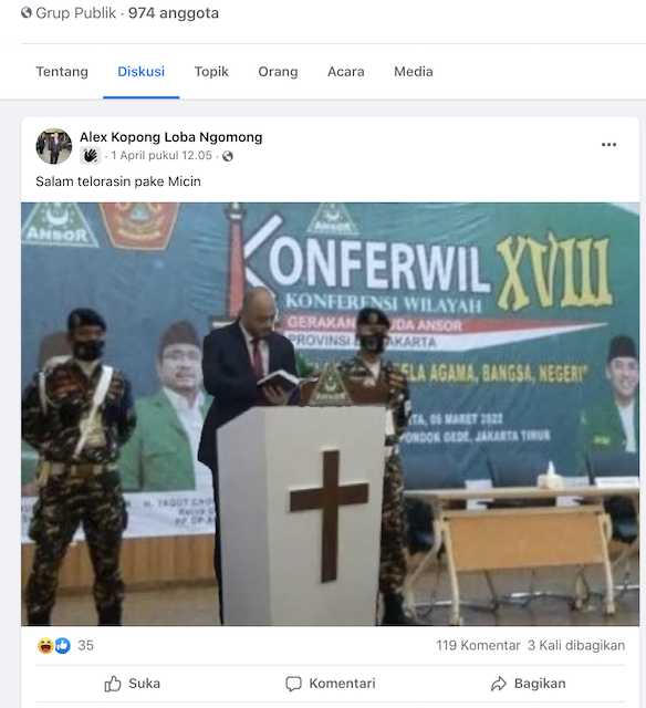 [Cek Fakta] Podium Salib dalam Konferwil GP Ansor DKI Jakarta? Ini Faktanya