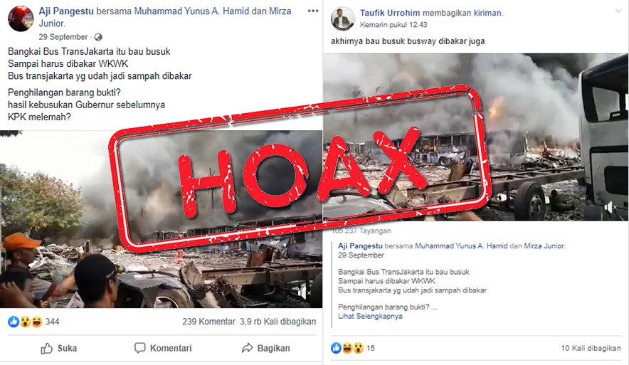 Dibakarnya puluhan bus bekas Transjakarta di Tangerang sebagai upaya penghilangan barang bukti adalah kabar tidak benar. Bus bekas diduga terbakar karena percikan api dari pembakaran sampah yang menyambar sisa gas yang masih tersimpan di dalam bus. Kejadian tidak memiliki hubungan dengan Pemerintah Provinsi DKI Jakarta karena kontrak dengan pihak operator sudah habis.