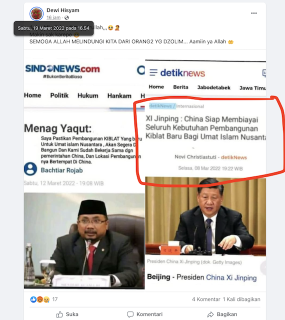 Baca juga: [Cek Fakta] Menteri Yaqut akan Bangun Kiblat Baru Umat Islam Nusantara di Tiongkok? Ini Faktanya