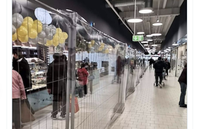 "Meanwhile in Germany the Vaxxed and non-Vaxxed are separated with a fence in a supermarket.