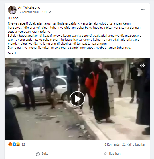 Adalah akun facebook Arif Wicaksono yang turut mengunggah video tersebut, 17 Agustus 2021. Akun itu membuat narasi bahwa video itu seolah terjadi baru-baru ini. Berikut narasi selengkapnya: