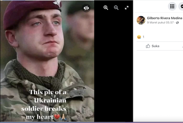 Dari hasil penelusuran, klaim pada foto yang beredar memperlihatkan prajurit Ukraina yang sedang menangis adalah salah. Faktanya, pria dalam foto yang beredar menangis haru karena menerima baret pasukan penerjun. Melalui reverse image, foto tersebut berasal dari situs The Sun pada artikel berjudul "'THIS IS FOR BOTH OF US' Brother of slain Afghanistan war hero breaks down as he follows in his footsteps to become paratrooper"dimuat 2019.