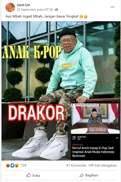 Unggahan ini mendapatkan 728 respon dari warganet. Serta 41 komentar dan 149 kali dibagikan ulang.